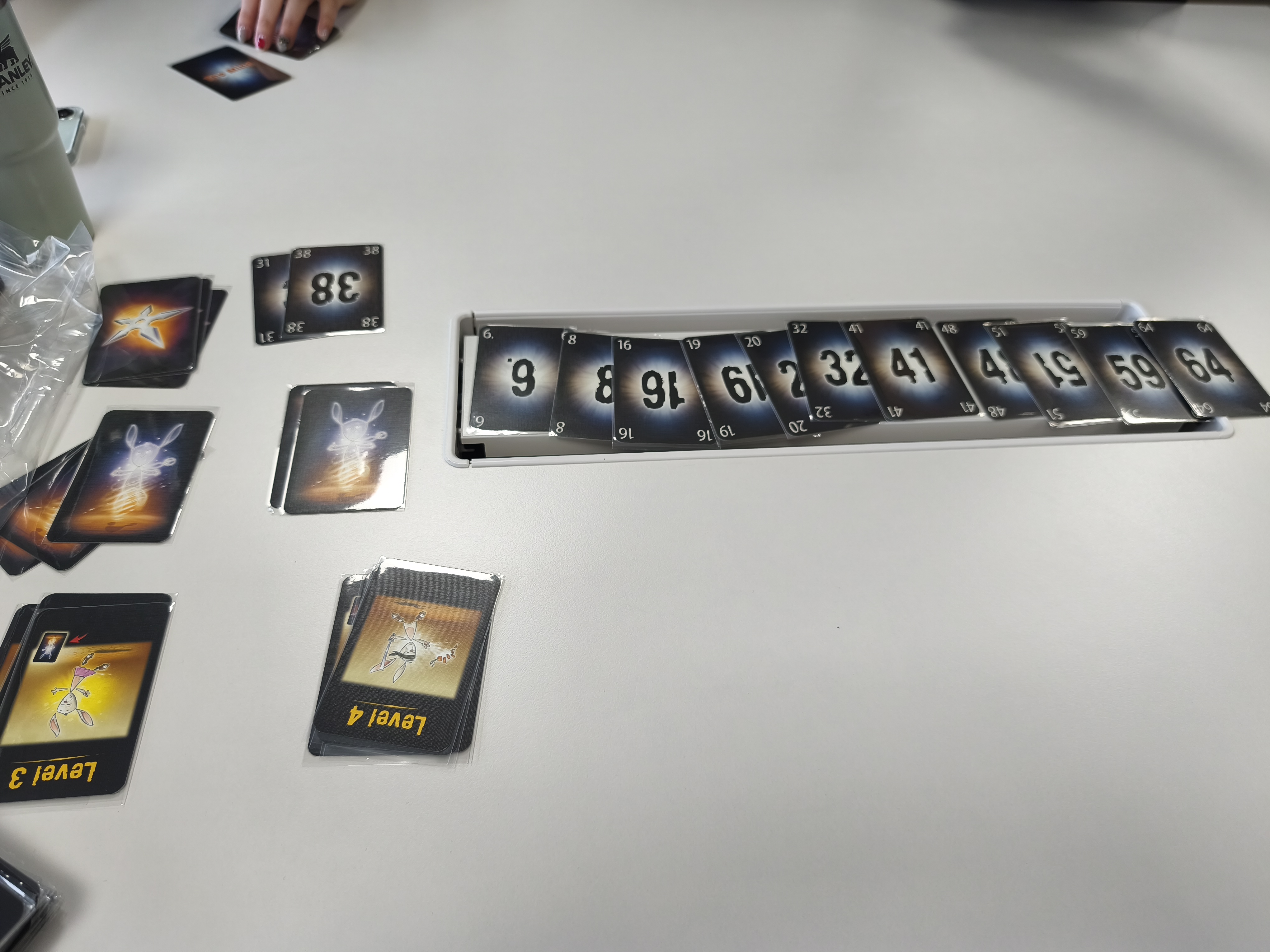 낮은 숫자 카드부터 높은 숫자 카드 순서로 손에 든 카드를 모두 내려놓으면 레벨을 깨고 다음 레벨로 넘어간다.