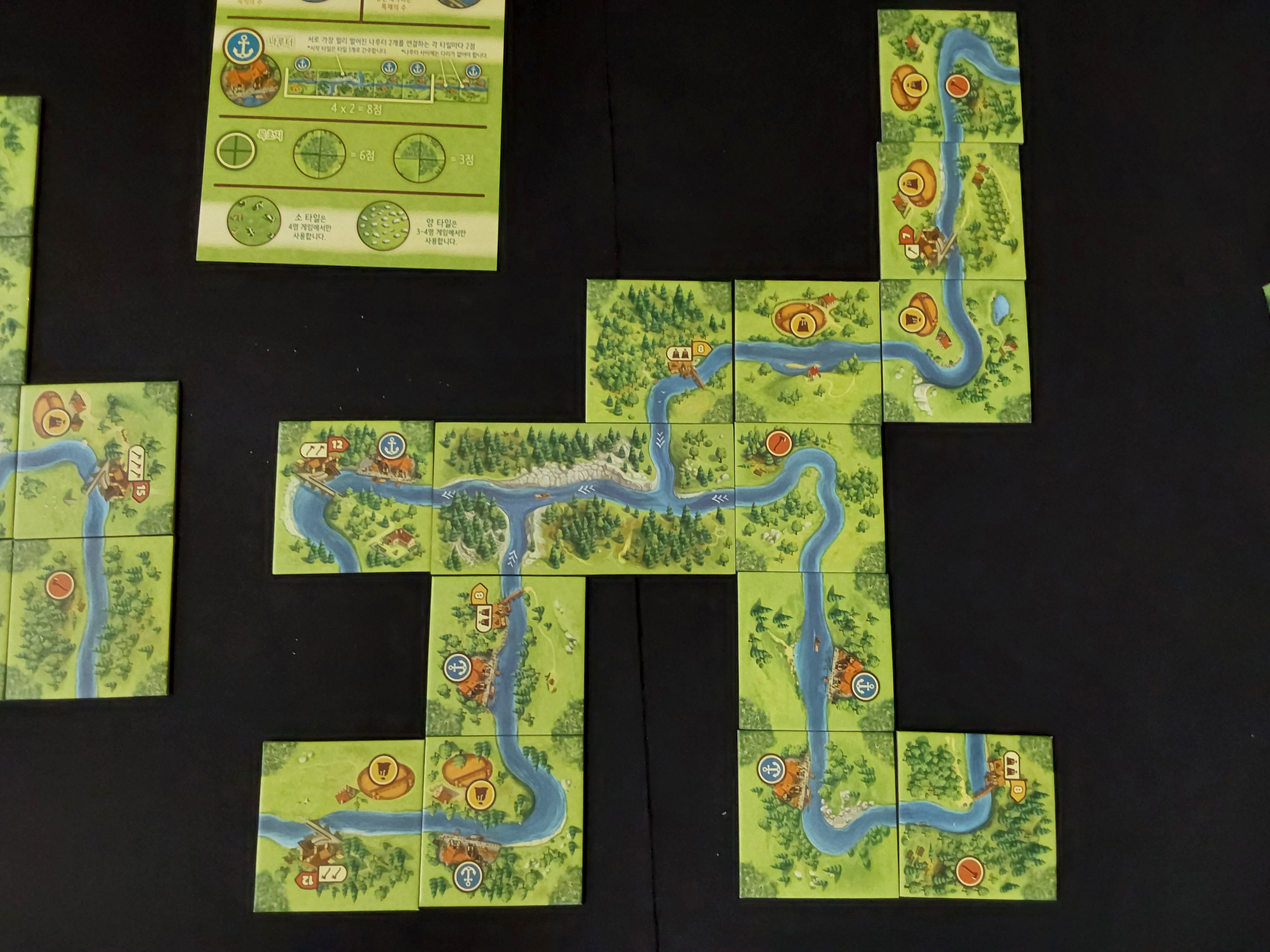 목초지 점수를 얻으려면 타일을 빈 공간 없이 뭉쳐지게 배치해야 하는데, 항구 점수를 얻으려고 길게 펼치다 보니 목초지 점수는 포기하게 된다.
