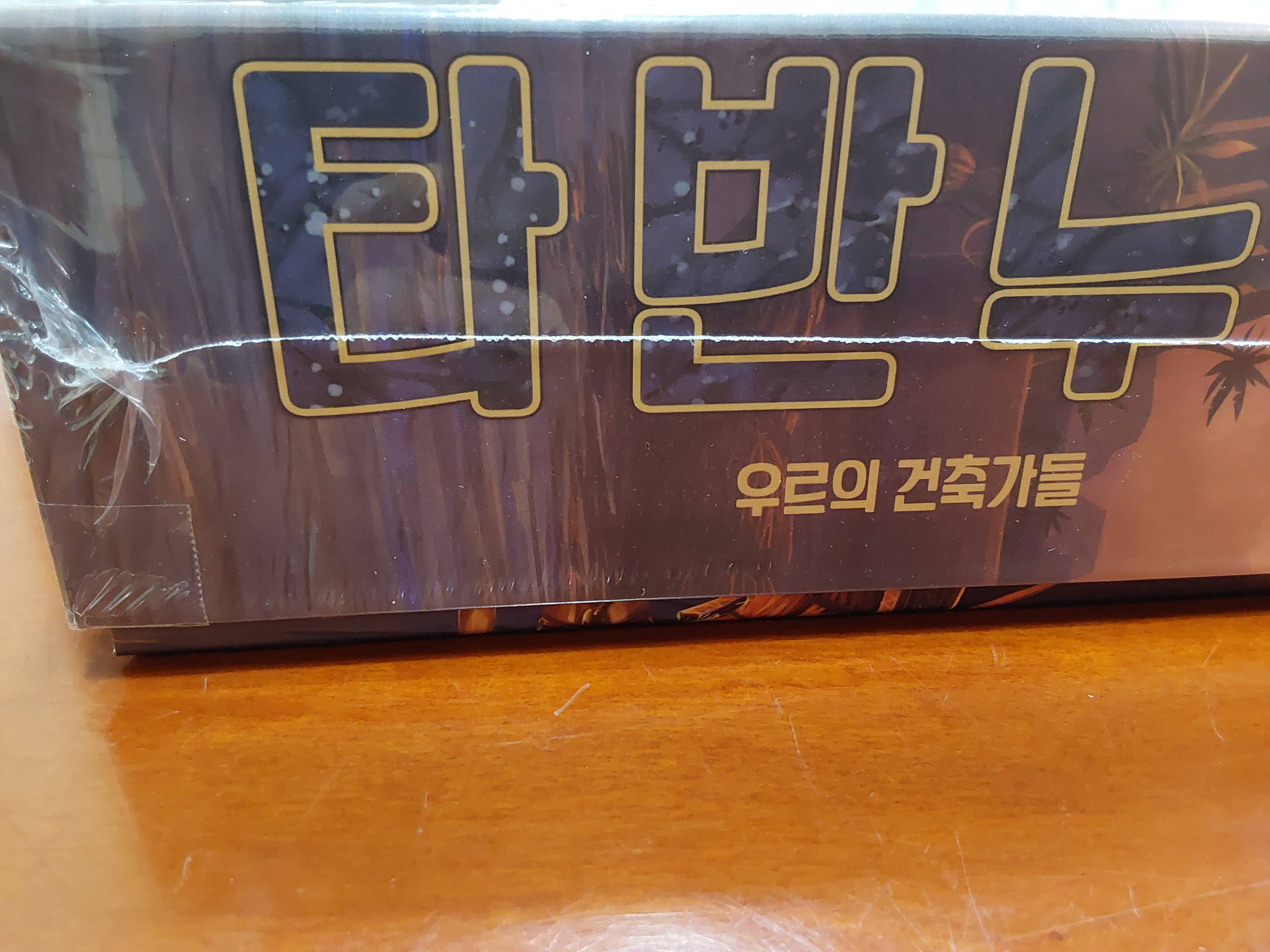 다이소 케이스 위에 개인 보드를 올리고, 카드들을 올린다. 카드 몇 장은 다이소 케이스 위에 놓는다.