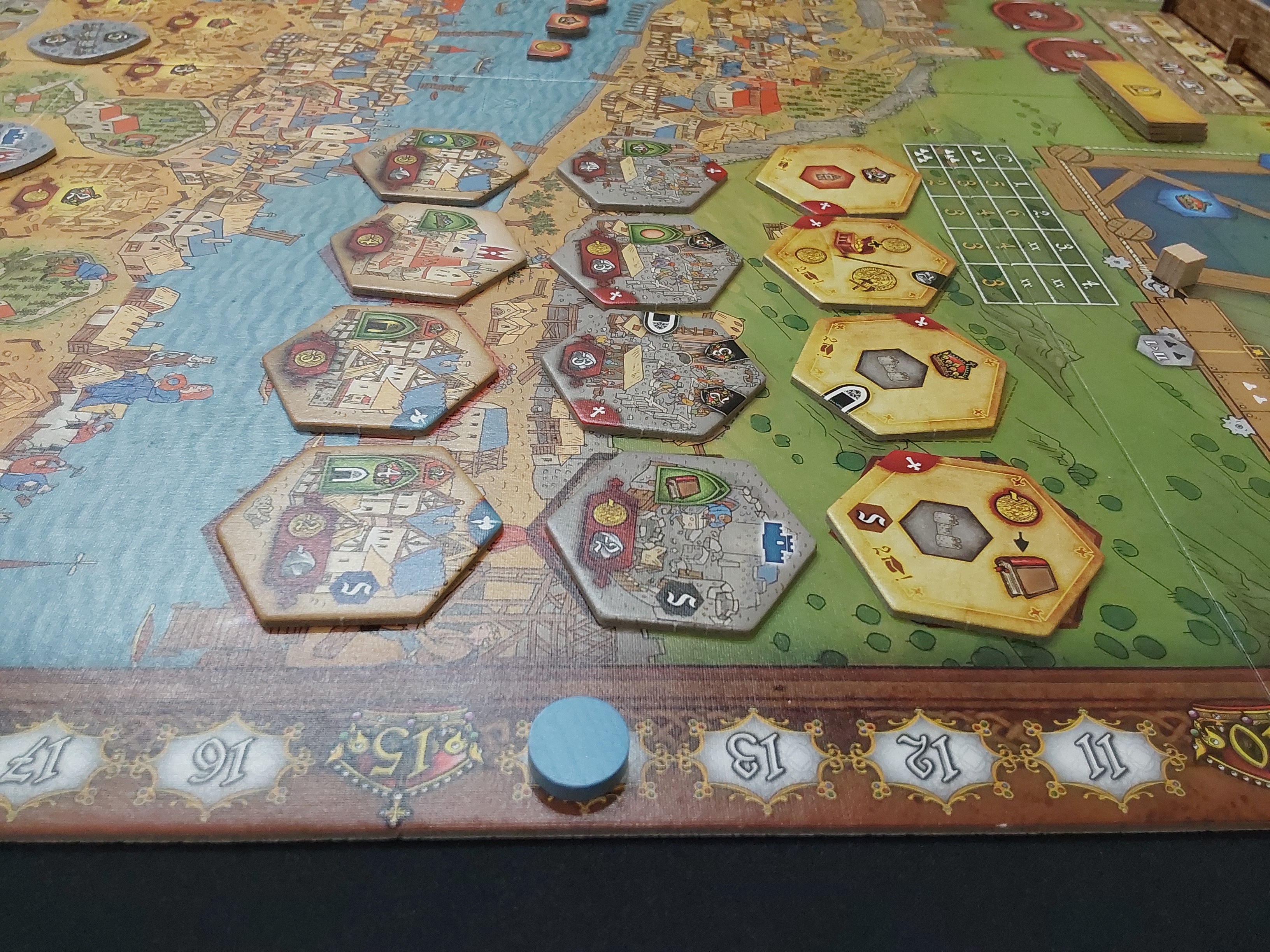 획득한 광장 타일의 보너스만 보면 금색 창문 2개, 은색 창문 2개, 승점 10점이다.