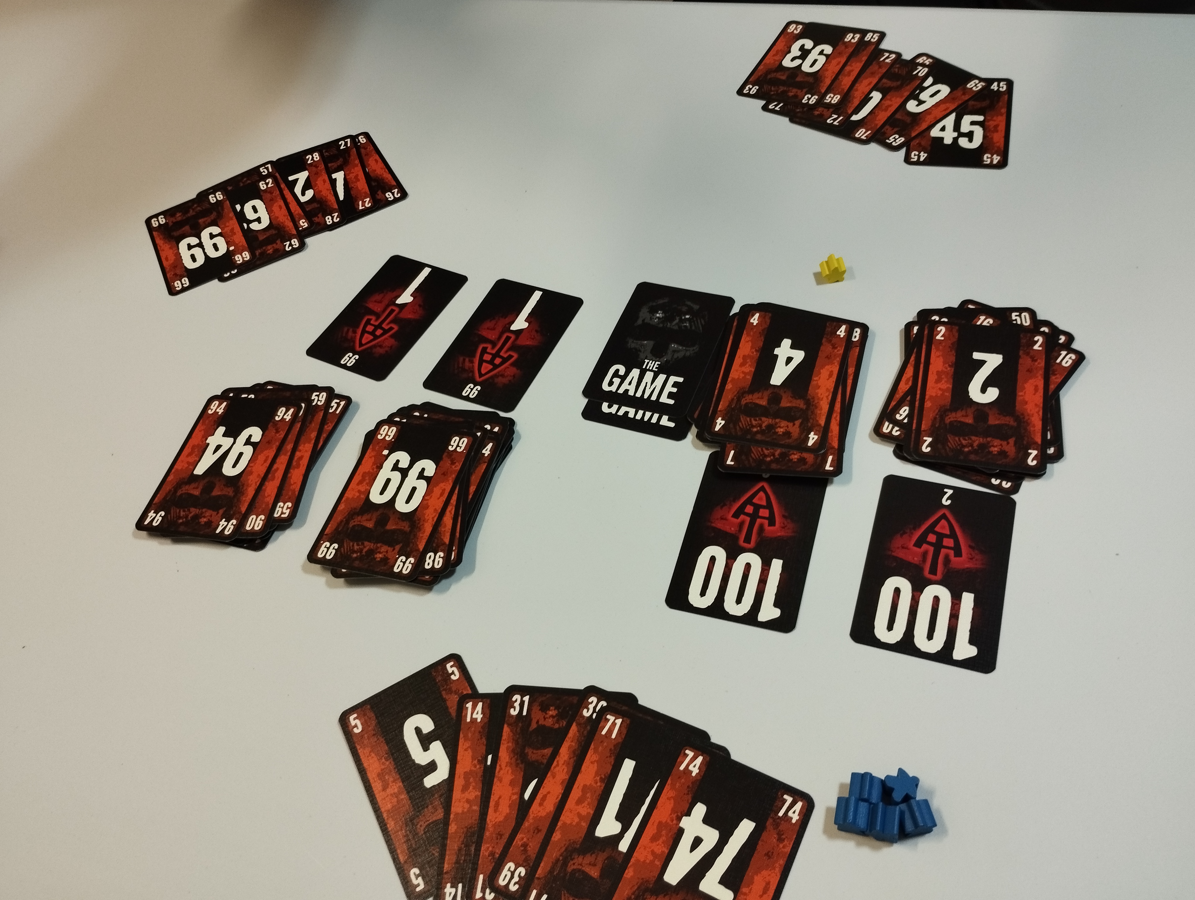 첫 게임으로 더게임을 선택했다. 이번이 두 번째 플레이로 첫 게임에 카드를 놓을 수 없어 힘들게 플레이되었던 기억이 있는 게임이다. 첫 게임에서는 카드 더미에 카드가 많이 남은 상황에서 처참히 끝났다.