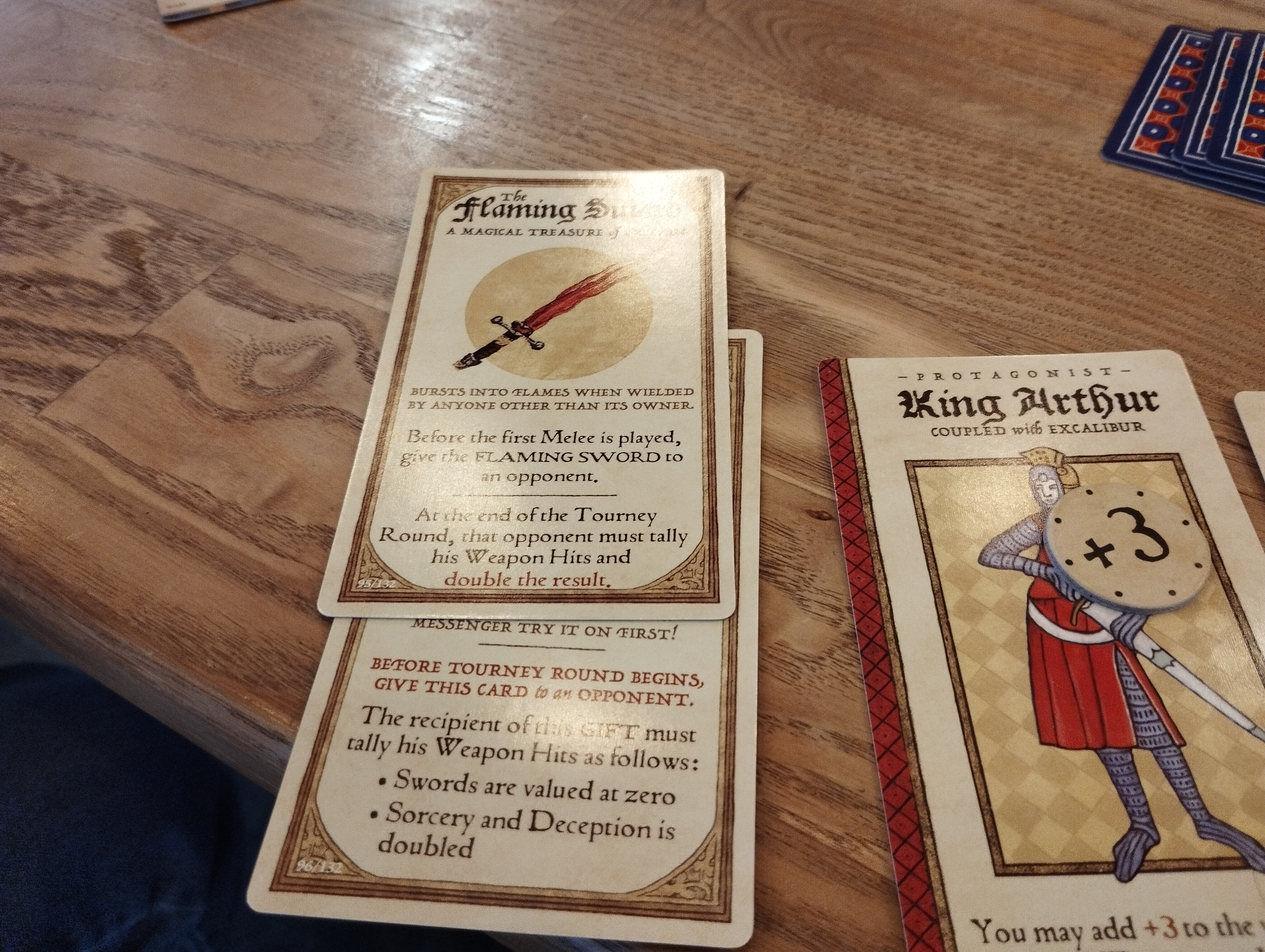 2. 아더 왕의 +3은 전투 중 아무 태나 사용해도 됩니다. 예를 들어 검 3을 내려놓고 다음 플레이어가 연금술 3으로 속임수를 유도할 경우, +3을 사용하여 속임수 상황을 피할 수 있습니다.